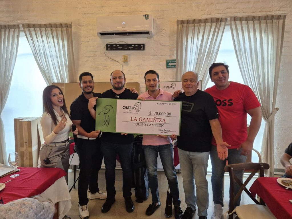 Hubo mas de 350 mil pesos en premios y rifas: Los 70 mil del águila que se embolsaron LA GAMIÑIZA, mas los 21 mil de LOS PONCHOS, y oyeses y los 28 mil del hole in one, que como no cayó se rifo y los ganones fueron LOS INVISIBLES. Además de las rifas entre lo que destacó la pantallas de 65, y 40 pulgadas que donó el H. tesorero Omar Tamaño, y el set de fierros, maderas, putt y bolsa de golf que dono MATZ Hernández, la computadora HP que dono polo a través de Los Gamiño y así muchos más premios que pueden ver al detalle en el sitio chatosopen.com