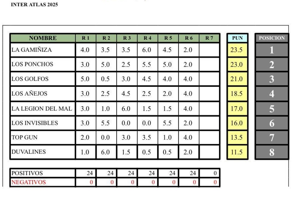 Resulta que hay 3 equipos: LA GAMIÑIZA (23.5), LOS PONCHOS (23) Y LOS GOLFOS (21), peleando por el primer lugar se llevan muy pocos puntos de diferencia, con la ventaja para LA GAMIÑIZA